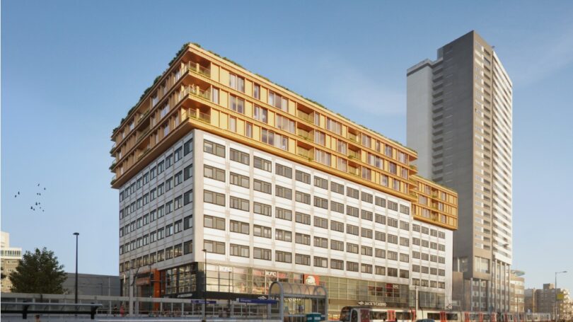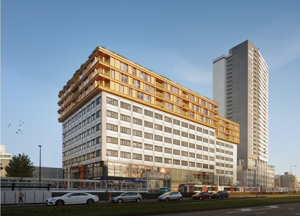 Transformatie aan het Prins Alexanderplein en de Pegasusweg: de bestaande kantoorlagen vanaf de 2e verdieping maken plaats voor moderne woningen. Bovenop het gebouw verrijst een elegante, 3-laagse optopping die het geheel een nieuwe skyline geeft.